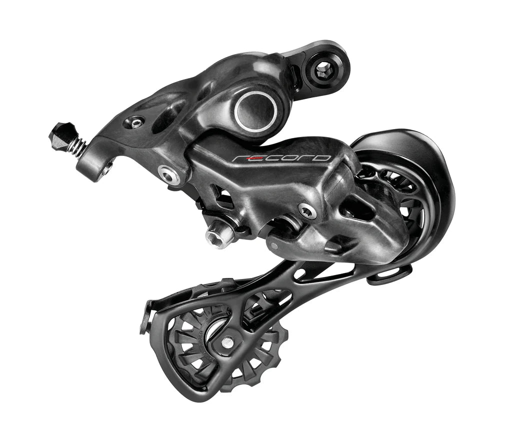 New mechanical Record™ 12 Speed rear derailleur: precision, lightness and versatility. Designed to improve performance and function in every aspect, the new Record™ 12 Speed mechanical rear derailleur has an innovative shape that envelopes the sprockets better thanks to 3D Embrace technology, creating a double effect: allowing the chain to maintain optimum traction at all times, thus increasing the speed, power and precision of shifting; and ensuring that the derailleur is always kept an optimal distance away from the sprockets.